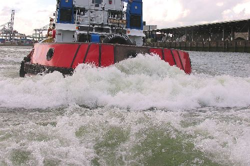 Mslb.vs HAMBURG roepnaam phbk imo nummer 8116714 bouwjaar 1983 lengte 25.85 mtr breed 8.80 mtr diepgang4.50 mtr totaal vermogen 2174 hp =1600 kW 2xk.h.deutz diesels type 6m628, per stuk 800kw trekkracht 25 ton snelheid 13 mijl per uur vlag nederland thuishaven rotterdam eigenaar kotug rotterdam